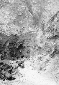| 採礦工人在峭壁下作業,多麼危險 |