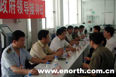 北方網消息(記者沈劍平):按照天津市委、市政府《關於進一步擴大對外開放加快開放型經濟發展的決定》,天津將6月份定爲全市集中力量開展開放型經濟“服務月”。爲將“服務月”活動真實展現給網民,記者隨採風團進行了實地採訪。6月15日,記者來到西青區政府服務中心大廳,當天恰好是西青區爲加快開放型經濟發展而開展的“接待日”活動。在服務大廳內,記者見到西青區主管區長和外經貿委、工業經委、建委、規劃局、工商局、勞動局、環保局、質量技術監督局、衛生局、監察局等部門的負責人都在現場辦公,爲企業提供現場諮詢、受理投訴服務,並向企業宣傳政策。