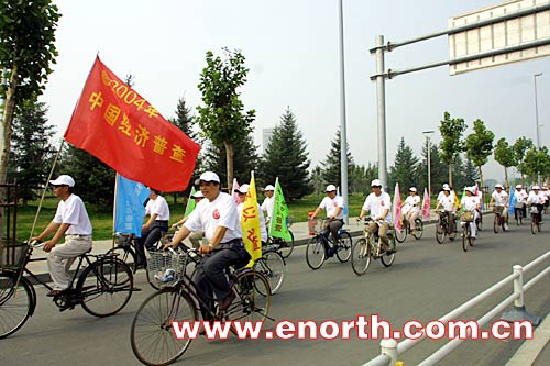 按照國家的統一部署,今年將在全市範圍內進行第一次經濟普查,這將是本市有史以來規模最大、範圍最廣的綜合性大型普查,普查結果將爲制定天津市國民經濟與社會發展計劃等提供科學依據。爲讓經濟普查家喻戶曉,市經濟普查辦公室和市統計局組織了經濟普查幹部騎行宣傳隊,在津城主要道路、繁華地段廣泛宣傳。