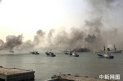 七月二十四日下午三時至四時三十分,福建省海上支前保障實兵演習在漳州港舉行。
