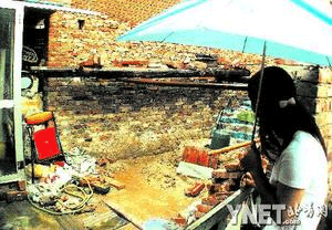 張女士:那房子實在是沒法住了。今年4月底,房頂的漏洞越來越大,終於承受不住,房頂開始往下塌。5月23日,我又接到房管所的危險自住房通知書,通知書限定我們在5月以前將西房先修繕或從裏面騰空,停止使用。爲了一家人的安全,6月1日,我只得在沒有規劃許可證的情況下開始翻建。剛開始我只準備把房頂給重新蓋一下,但是拆完房頂才發現,我們這房子是土坯房,房頂一掀,房子整個也得翻新,要不根本就沒用。於是我們開始在原有的地基上壘磚翻建。