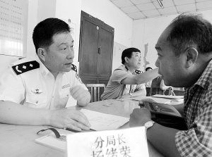在公安河東分局信訪接待辦公室內,數名來訪者已經匯聚在這裏。此時分局長楊緒榮正在接待來訪羣衆,在記者觀察的近一個小時中,分局長楊緒榮接待一個又一個的來訪人員,其間沒有喝過一口水,一直堅守在座位上,雖然時間長,但他對每一個來訪者的傾訴都認真地聆聽,同時在自己的記錄本上進行細緻的記錄。分局長楊緒榮表示,老百姓反映的事有時雖然不是特別重大的事,但卻是與老百姓息息相關的事,雖然有些反映的問題比較複雜,不能夠馬上解決,但要認真接待來訪的人員,爭取讓每一個來訪者感到滿意。