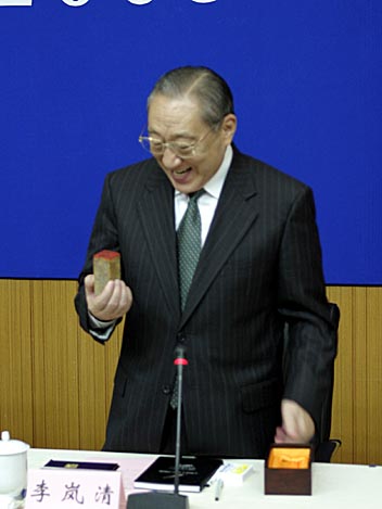 李嵐清71歲學習篆刻,在今天上午舉行的復旦管理學獎勵基金會成立儀 式上,他把自己的篆刻作品“復旦大學”送給母校,他笑說:“其實我刻了兩個,另外一個‘百年校慶’就留給自己了。”