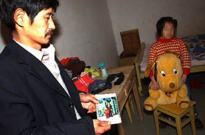11月24日,安徽休寧縣人禽流感患者許某某的丈夫拿着她生前的照片。