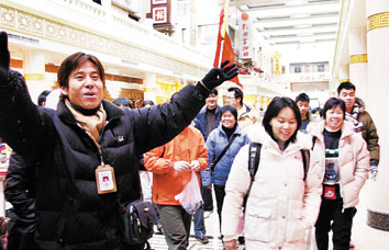 昨天,北京、廣東等旅遊團體慕名來到食品街觀光旅遊、購物就餐,使冬日裏的食品街熱鬧非凡。