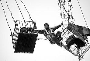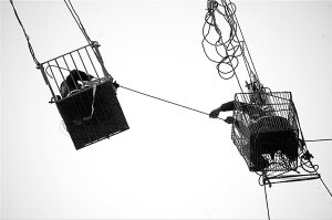 昨天讀者報料稱,下午1時15分,在天津南開區青年路某工地,由於颳起了4-5級的西北風,一輛塔吊在吊運一塊模板時,塔吊的兩根鋼絲繩纏繞在一起無法解開。無奈之下,一名工人乘坐臨近的另一輛塔吊升上30餘米的高空解圍。不料,前來解圍的工人乘坐的塔吊繩索又與被困塔吊的繩索纏繞在一起,導致解圍工人被困30餘米的空中3個多小時無法脫身。