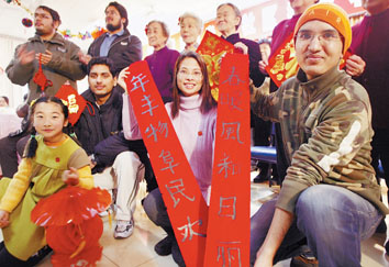 12名來自尼泊爾的醫科大學留學生前天來到天津市和平區新興街新興北里社區,與新興街志願者、獨居老人、武警官兵以及社區羣衆歡聚一堂,迎接新春佳節。這些外國留學生寒假不回家,他們對中國的年俗非常好奇,在中國朋友的幫助指導下他們包餃子、寫對聯、掛燈籠、放爆竹,度過了一個難忘的假日。