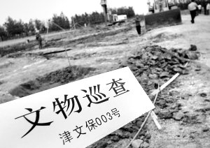 昨天上午,冒着雨,記者和文化遺產保護中心人員一同趕往武清區富村。12萬多平方米的土地上隨處可見考古人員規方下的梅花點孔。3個多月來,勘察區域經過多輪勘察,已圈定多處考古遺蹟點。據文化遺產保護中心梅隊長介紹,從2005年3月開始,經過天津文化遺產保護中心的考古調查,發現武清區境內分佈着富村、白古屯、三角地、黃辛莊、桃園村、八里莊等八處埋藏着地下文物的聚集地。