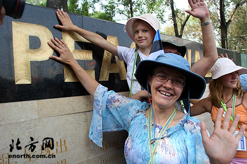 北方網消息(記者吳宏 攝影馬成):29日上午,華夏未來東廣場熱鬧非凡,來自中外各藝術團的衆多少年兒童齊聚和平牆,寫下自己對和平、友誼、未來的期盼。