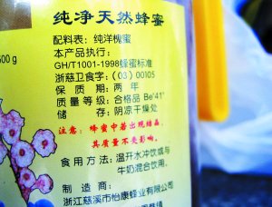 據消費者反映,在世紀聯華銷售的這種商標爲“蜂博士”,生產企業爲浙江省慈溪市怡康蜂業有限公司,淨含量500克的洋槐蜜,生產日期爲2006年7月6日,產品執行的標準是行業推薦標準。這位消費者表示,國家從今年3月1日開始就在生產領域實施了蜂蜜國家強制性標準,而超市還在出售企業7月份生產的沒有標註國家強制性標準的蜂蜜。