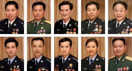 | 9月21日,第二屆“我最喜愛的人民警察”評選結果在北京揭曉。獲此殊榮的10位警察是:(上排左起)左芷津、李新寶、郭韶翔、王峯、王百姓,(下排左起)吳幹呈、劉健濤、符傳泉、湯敏、印春榮。 |