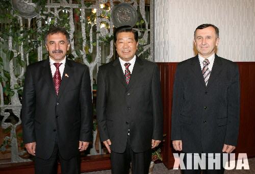 | 11月2日,中國全國政協主席賈慶林在辛菲羅波爾會見烏克蘭克里米亞自治共和國最高蘇維埃主席格里岑科(左)和部長會議主席普拉基達。 |