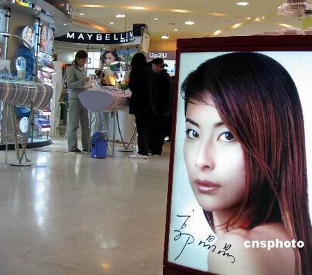 | 一則由跳水明星郭晶晶代言的化妝品廣告在上海某商廈新鮮登場 |