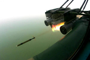 在對“敵”陣地實施了有效的炮火打擊和電磁干擾後,戰鬥進入攻堅階段。我陸航部隊和突擊作戰部隊適時出動。戰機轟鳴。10餘架某新型改進型武裝直升機每兩機一組,成尖刀陣形飛臨上空。在僚機護衛下,長機迅速攀升高度,隨即一個俯衝。兩側火箭彈帶着長長的曳尾火光噴射而出。“敵”陣地陷入一片火海。緊跟在後的運輸直升機編隊迅速接近。艙門打開。突擊隊員們或繩降、或機降,配合官兵們迅速控制了“敵”要點。