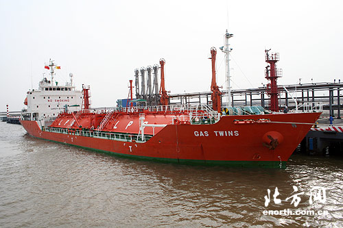 北方網消息(記者王冰 通訊員胡志強 田邨):23日,裝載着3000噸氯乙烯的巴拿馬籍“雙子”號化工船,在天津港兩名高級引航員引領下,安全靠泊臨港工業區5000噸級液體化工碼頭。這是天津臨港工業區開港以來迎接的首艘國際商船,標誌着該碼頭已具備接卸能力。
