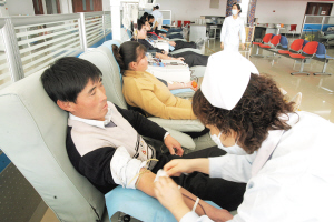 兩輛麪包車剛剛在血液中心的院內停穩,車內的十多名男子便匆匆跳下車,跑到獻血資訊臺前,迫不及待地掏出身份證,領取獻血表格。根據獻血規定,一位59歲的老人因超齡無法獻血,另一名男子因血糖較高也無法獻血。其他人則順利通過檢查,面帶笑容地走進了獻血室,看着醫生熟練地工作,看着鮮血緩緩地流出。