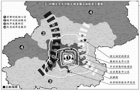 | 北京市功能區域發展總體框架示意圖 |