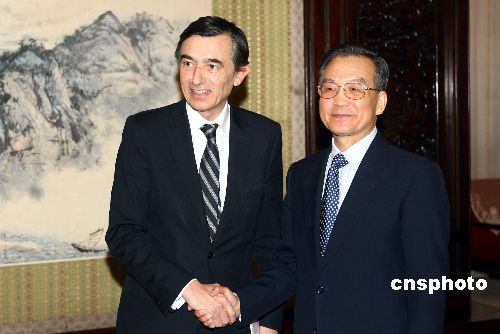 二月二十八日,中國國務院總理溫家寶在北京會見來訪的法國外交部長菲利普·杜斯特—布拉齊。