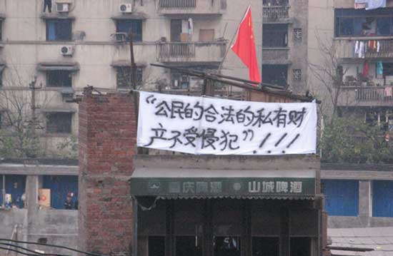 人大副教授稱若物權法生效重慶釘子戶可以勝訴