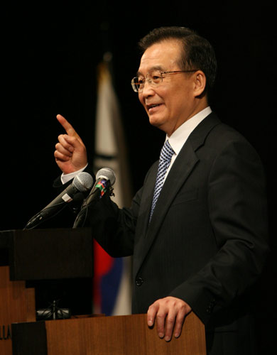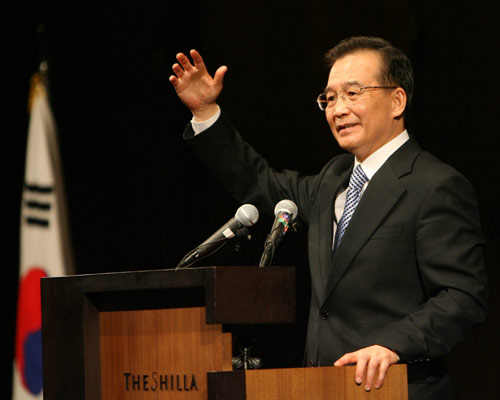 中國總理溫家寶今天在中韓經濟界午餐會上發表了題爲《共同譜寫中韓經貿合作的新篇章》的演講。