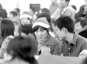 現場氣氛十分火爆。一位來自天大研二的男生在接受採訪時表示,選擇心儀的對象時他並不介意女方的學歷,更注重的是感覺。他說:“來參加活動首先看重的就是友誼,即使沒有合適的也會認識很多朋友。要是有喜歡的那就更好。”現場,幾個漂亮的女生坐在角落侃侃而談,她們來自南大法學研二。她們表示:“未來的男友要是學歷與自己持平或略高就更好。”