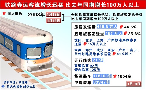 圖表:鐵路春運客流增長迅猛 比去年同期增長100萬人以上