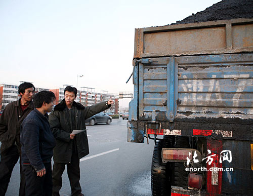 津南市容委和執法局在外環線路口,攔截68輛由西青區駛來無密閉裝置工程運輸車。