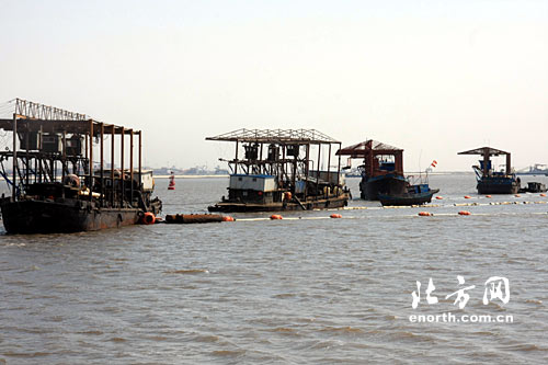 “但從2008年開始,又有很多不合格的內河船舶因受利益驅動重新涌入天津水域,非法長途運砂活動出現死灰復燃的趨勢。”天津海事局巡查執法支隊隊長王長青說。目前天津港水域共有打樁船、挖泥船、砂石料運輸船及各類輔助船等船舶近400艘,其中包括內河施工船舶近300艘。數量如此衆多的施工船舶彙集天津港,給港口的通航秩序和船舶安全造成隱患。