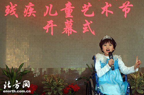北方網消息(記者吳宏 攝影馬成):爲全面展示殘疾兒童精神風貌和藝術風采,動員全社會都來關注殘疾兒童的成長,由天津市殘聯、市教委、市文化局、市慈善協會、華夏未來文化藝術基金會、天津信託投資公司聯合主辦的“天信的愛”第六屆天津殘疾兒童藝術節,16日下午在華夏未來少兒藝術中心開幕。來自市兒童福利院、聾啞學校、盲人學校以及各區縣啓智學校的300餘名師生參加了開幕式。