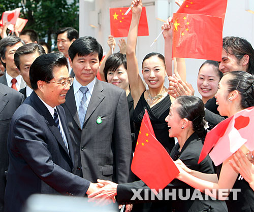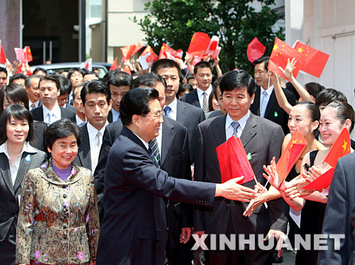 5月8日,國家主席胡錦濤來到日本松山芭蕾舞團,看望日本友人清水正夫一家。這是胡錦濤受到松山芭蕾舞團演員的熱烈歡迎。
