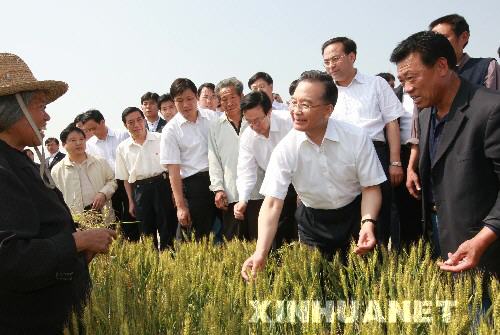南陽是糧食主產區,素有『中州糧倉』之稱。11日,溫家寶來到內鄉縣趙店鄉小謝崗村,察看小麥生長情況。