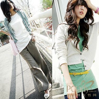 藍色針織外套,配白色上衣,有點閑懶的情趣。生活有時就是這樣寧靜。