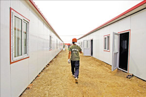 昨天下午,記者在四川省綿竹市漢旺鎮看到,由天津援建四川災區的過渡性安置房已初具規模,道路兩側一片繁忙景象。為讓當地災民早日入住,建設者們克服高溫、缺水等困難,晝夜奮戰、加緊建設。