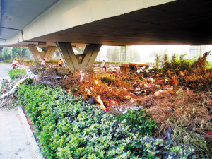 近日,本市園林部門對河東區中山門橋下的空地進行了綠化。不過住在津塘路附近的市民宋女士騎車經過橋下時卻發現,橋下由二宮到東興橋方向的道路左側竟有一個雜草叢生、堆滿雜物的垃圾堆,半年多時間裡也沒有人清理。