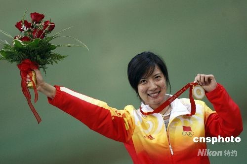 8月14日,北京奧運會女子50米步槍三種姿勢決賽在北京射擊館進行,中國選手杜麗奪得金牌。 中新社發 盛佳鵬 攝