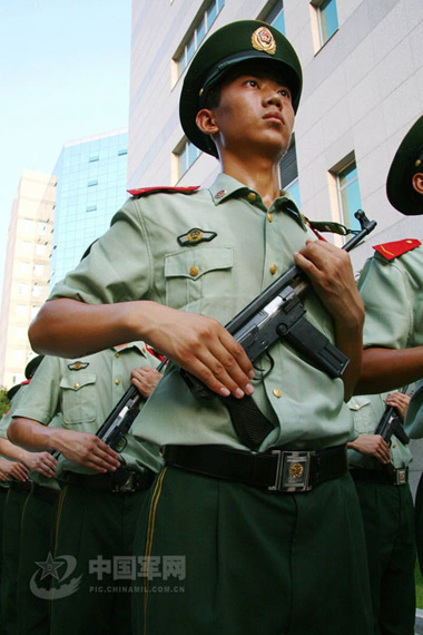 如果您知道他的身份,對皮鞋更換的速率就不會覺得奇怪了。許昌兵是武警廈門支隊三中隊國旗護衛隊的擎旗手。雖是上等兵,但今年國慶,他將第二次參加市政府昇旗儀式。他年紀不大,但說話的時候雙眼卻能透出一份令人敬畏的神采。從7月下旬開始,許昌兵和國旗護衛隊的戰友們一起,就開始為今年國慶的昇旗儀式進行『魔鬼訓練』了。許多人都聽過天安門國旗護衛隊的故事,其實在三中隊,故事也同樣的發生著。國慶將近,筆者走近他們,探秘這支代表著特區形象的隊伍,親身感受他們的——『魔鬼式訓練』。