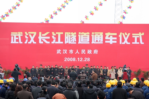 2008年12月28日,武漢長江隧道在武昌隧道主出口處舉行通車儀式。中共湖北省委副書記、省長李鴻忠,中共湖北省委副書記、中共武漢市委書記楊松,中共湖北省委常委、常務副省長李憲生,中共武漢市委副書記、市長阮成發,武漢市政協主席葉金生等省市領導出席了通車儀式。