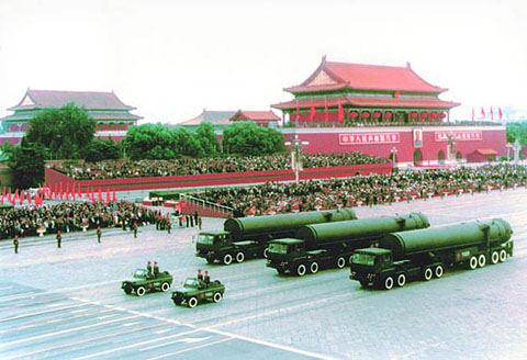 時至1999年10月1日,國慶50年閱兵同樣大受關注,尤其是東風—31導彈、T—90坦克、『飛豹』戰機等先進武器亮相。美聯社當天報道說,『中國今天展出了它的一些最新軍事裝備,表明這支世界上最大軍隊、270萬人的人民解放軍實力日益增強』。路透社稱『中國大規模展示火力裝置是為了向世界,尤其是臺灣展示新的實力和團結』。有香港媒體猜測中國想借『威風八面的導彈』阻嚇美國介入臺海。日本《讀賣新聞》則依據東風—31導彈的『個頭』窺探中國導彈的『革命性突破』。