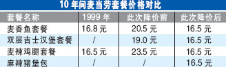 麥當勞昨天宣布,推出名為16.5元『天天超值套餐』舉措,四款套餐最高降幅達32.6%,價格甚至比10年前還要低。
