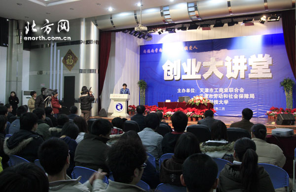 日前,為更好地貫徹實施本市創業帶動就業規劃綱要,引導本市高校畢業生樹立起正確的就業觀、創業觀,提高他們的社會責任意識,激發更多的高校畢業生走上奮發圖強、報效國家的創業之路,為實現天津經濟社會又好又快發展做出貢獻,天津市工商聯、天津市勞動和社會保障局、天津科技大學共同舉辦了『創業大講堂』活動。