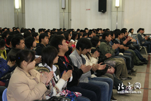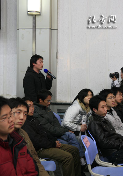 看到現場同學踴躍提問,於家慶又用幾個好政策給大家鼓勁。他說:『勞動、工商等部門還出臺了一些促進大學生就業的好政策:鼓勵各類企業吸納大學畢業生,勞動部門給予企業社保補貼;鼓勵大學生自主創業,首次創業工商部門提供零首付辦照,勞動部門鼓勵在校大學生創業,保留學籍2年;鼓勵大學畢業生到企業進行就業見習;今年在街道、社區新增5000個社會服務的公益崗位,就業者將享受最低工資和五險待遇。今年是創業促就業規劃綱要實施的開局之年,希望大學生們能夠加入到創業隊伍中來,充分發揮大家的聰明纔智,釋放大家的創業潛力。』