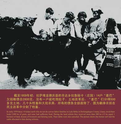 ——經濟地位的偉大轉折。廢除了烏拉差役和高利貸剝削,翻身農奴第一次享受自己的勞動成果。烏拉差役和高利貸剝削,使農奴和奴隸的勞動成果喪失殆盡,嚴重威脅著他們的生存權。農奴主對農奴的剝削,主要形式為『差』。這是一種包括徭役、賦稅、地(畜)租在內的含義十分廣泛的差稅總稱,統稱烏拉差役。僅西藏地方政府征收的差稅就達200多種。農奴為地方政府和莊園領主所支的差,一般要佔農奴戶勞動量的50%以上,有的高達70%至80%。農奴主剝削農奴的另一種主要方式就是高利貸。三大領主都是大大小小的高利貸剝削者。歷代達賴喇嘛設有專管自己放債的機構『孜布』和『孜窮』。西藏地方政府設有為數不少的放債機構,其下屬的基巧、宗政府都放高利貸,放債、收息成為各級官員的行政職責。西藏的大小寺廟沒有不放債的。高利貸盤剝的收入佔拉薩三大寺(哲蚌寺、色拉寺、甘丹寺)總收入的25%至30%。貴族絕大多數也放高利貸,債息在其家庭收入中一般要佔15%至20%。農奴為了活命只好舉債,欠債的農奴要佔農奴總戶數的90%以上。高利貸年利率一般都很高,向寺廟借錢利率為30%,借糧利率為20%或25%;向貴族借錢利率為20%,借糧利率為20%或25%。高利貸利滾利,造成永遠還不完的『子孫債』和以借貸人、擔保人全部破產而告終的『連保債』。