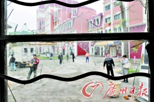 | 4月7日凌晨,40餘人持槍、魚叉等攻擊性器械突然衝擊廣州世界大觀,槍擊保安。 馮昕 攝 |