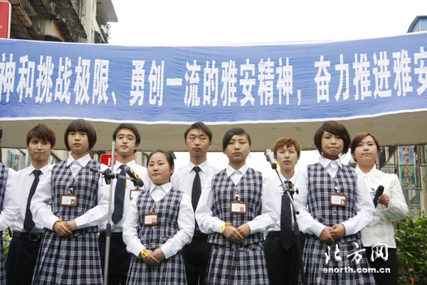 在默哀儀式後,雅安市民以詩歌朗誦和圖片展的形式,對紀念抗震救災一週年。