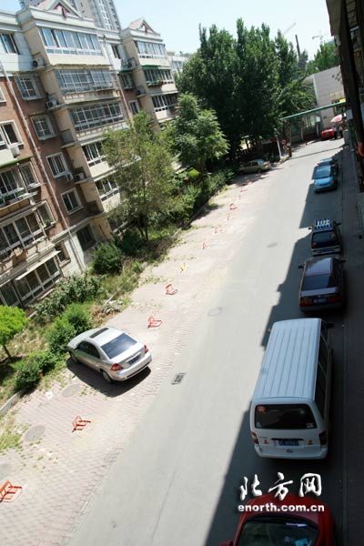 | 時代奧城小區,物業規范小區道路,非規劃車位不能繼續停放汽車。 |