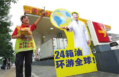昨天,殼牌在京的19家加油站集體啟動『集吉尼斯金牌,贏24箱免費油』優惠活動,該活動相當於令每昇汽油便宜0.1元。