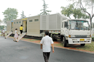 昨天,本市首座具有高科技含量的車載流動公廁在河西陳塘科技商務園區亮相,供羣衆免費使用。車載移動公廁長19.6米,寬3米,內設空調、背景音樂、無障礙自動升降梯、微電腦自動控制。