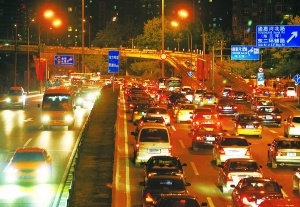 交管局指揮中心表示,長安街上的交通高峯今後幾天會持續到晚上10時左右。從監控探頭中發現,哪怕只是從長安街經過的司機,在途經天安門廣場時也會明顯減速,觀看廣場上的美景,而這種行爲對交通確有很大影響,人爲地降低了通行速度。民警建議,如果不是專程賞花觀燈,司機最好能繞行平安大街、前三門大街等平行線,避過擁堵路段。