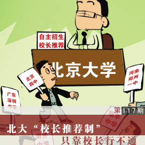 “憑中學校長的一紙推薦信,學生便有機會免試參加北大的自主招生面試,合格者在高考錄取時可享受降30分進入北大的資格。”北大的“中學校長實名推薦制”新政,一經公佈“一石激起千層浪”,立即引起各方關注,贊成、反對者兼而有之。