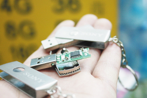 比如,U盤外殼、芯片,該公司都可以生產,200個起訂。U盤容量可以按照客戶的需求加工,從1G至64G,想要多大都行。“對於我們來說,成本主要是二次加工的手工錢,以及金屬外殼的原料錢。只需要把舊U盤芯片的幾個管腳和集成板的幾處電容短接,想把容量修改成多大都行。正常查看的話,容量顯示一點問題沒有。”